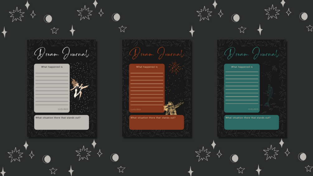 Here are my new samples of my Dream Journal- Editable and Printable Designs